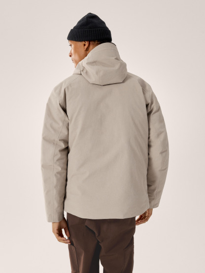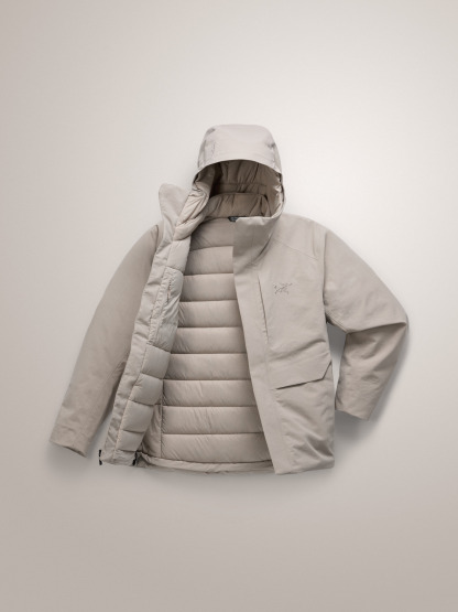 Minimalist design lines. Maximum weather protection. The Therme Down Jacket fuses a refined aesthetic with the technical construction of a tried-and-true Arc'teryx hardshell. Built for wet-weather rambles and trips around town, its GORE-TEX ePE material and adjustable StormHood™ shield from wind chill and downpours. Soft, lightweight goose down seals your body in warmth, keeping you comfortable from office to après.